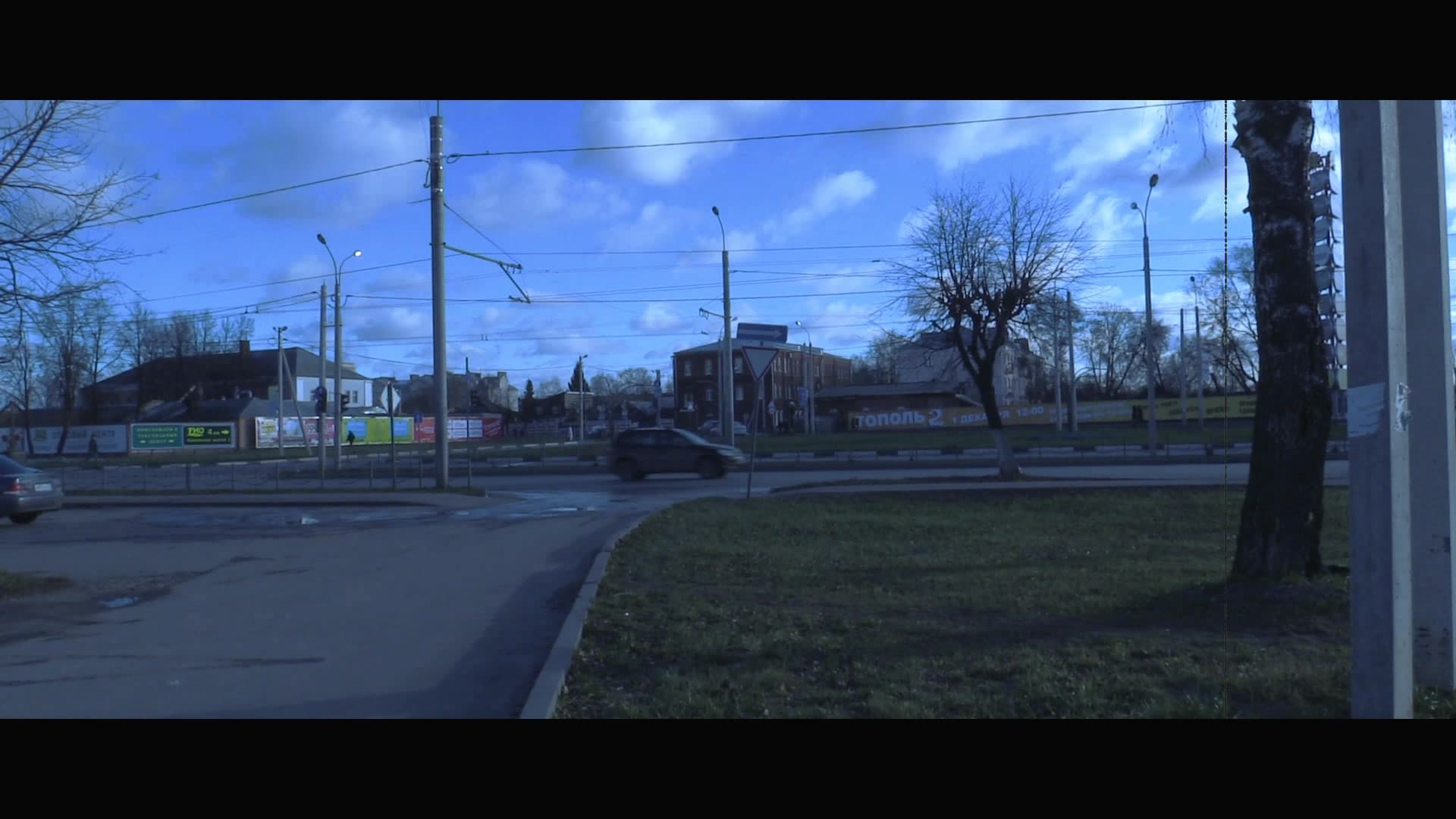 Ввиду небольшого количества пикселей в используемой матрице можно ожидать столь же низкого уровня роллинг шаттера (подробнее см. в материале Роллинг шаттер в видеосъемке — описание дефекта, примеры, пояснения). Собственно, это мы и наблюдаем: роллинг шаттера почти нет. Для сравнения — если бы данное видео было снято, к примеру, многомегапиксельным фотоаппаратом, то этот дорожный знак имел бы наклон не менее 45°.