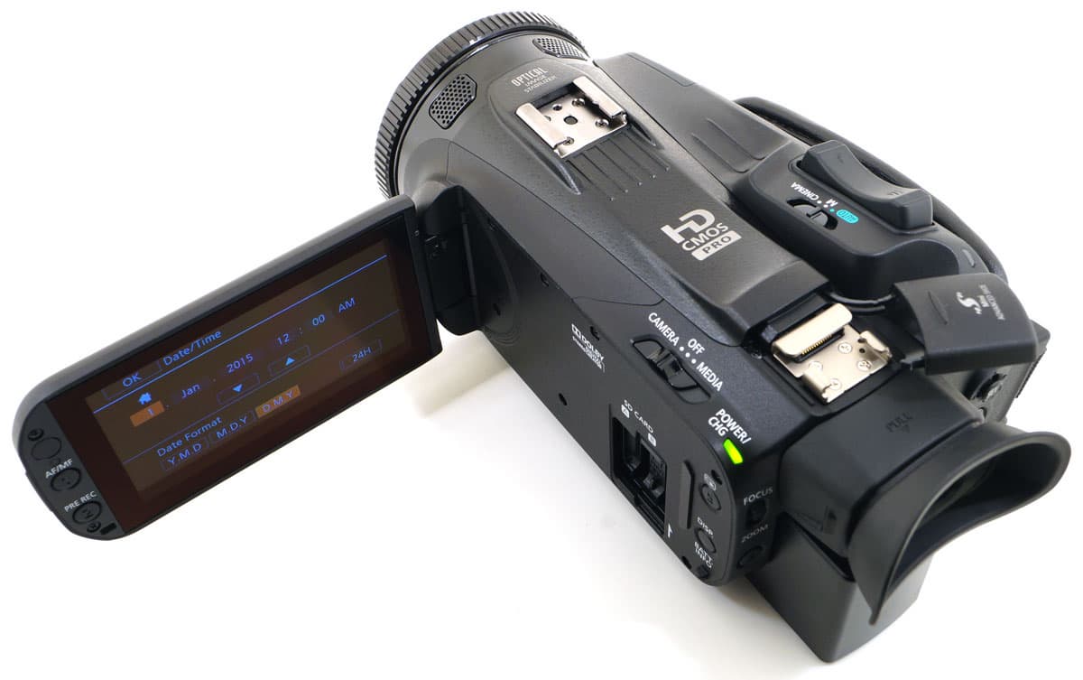 Камера отличается от большинства прочих камкордеров аналогичного топ-класса тем, что здесь есть сразу две крепежных площадки — одна представляет собой стандартный «холодный башмак», а вторая, которая расположена ближе к торцу корпуса, предназначена для крепления совместимых аксессуаров (например, направленный стереомикрофон DM-100 и прочие принадлежности, носящие логотип совместимости Mini Advanced Shoe).