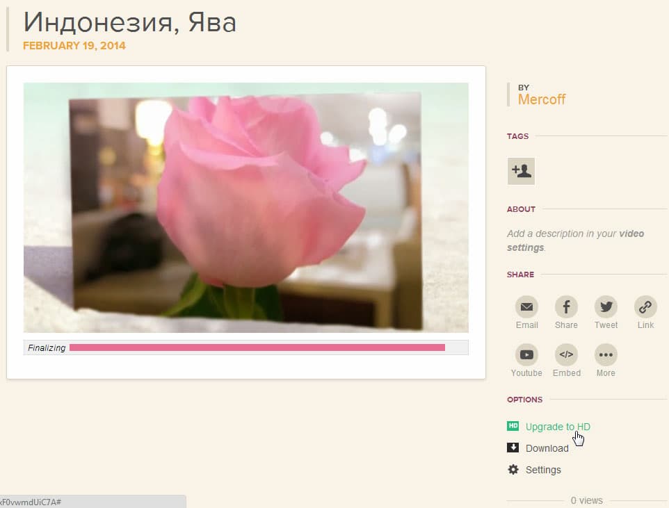 Все ясно, вот теперь можно вернуться на сайт и просмотреть созданный фильм, либо оповестить мир о своем произведении, разместив ссылку или сам фильм в распространенных социальных сетях.