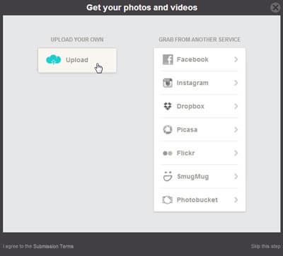Схема, по которой здесь создается фильм, проста, и имеет все основания стать традиционной для сервисов подобного рода. Во-первых, импорт материала. В качестве медиафайлов могут быть использованы как файлы, находящиеся на локальном ресурсе, так и уже загруженные ранее на YouTube, Vimeo или Facebook. Кстати, а почему тут все еще нет наших Однокласников и Вконтакте?
