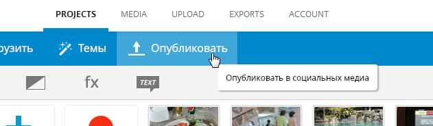 Экспорт готового фильма осуществляется через операцию с названием Опубликовать.