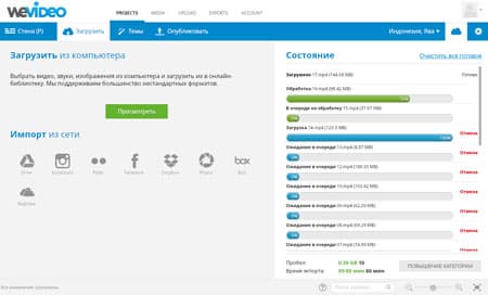 В отличие от рассмотренных ранее сервисов, WeVideo не обучен автоматическому монтажу. Это — самый настоящий видеоредактор. Отличается он от привычных программ лишь тем, что не требует установки на ПК. Все, что нужно для работы — обычный браузер.
