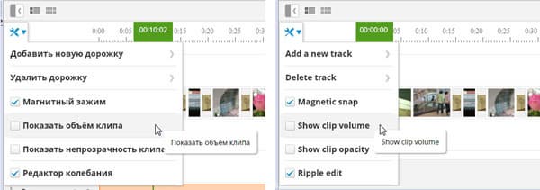 Режим отображения таймлинии позволяется изменить — точно такая опция имеется в каждом любительском видеоредакторе для настольных компьютеров.