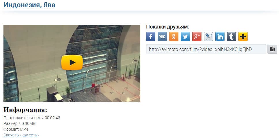 Также у пользователя имеется возможность «расшарить» фильм или ссылку на него в некоторых известных сетях. Но для того, чтобы скачать ролик, требуется немного подождать — данное время требуется, чтобы подготовить download-версию, качество которой выше, чем у предназначенной для обычного онлайн-просмотра.