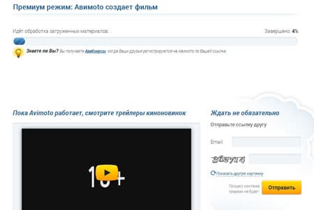 В процессе создания ролика можно ознакомиться с полезными советами, просмотреть трейлеры киноновинок, но главное — отправить друзьям ссылки на свой будущий фильм. Данные письма найдут своего адресата не сразу по нажатию кнопки Отправить — они будут высланы только после того, как Авиmoto закончит работу над фильмом, что вполне разумно.