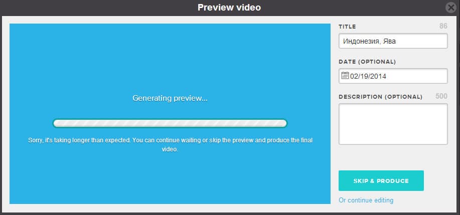 Если же вы уверены в своем выборе, или не хотите ожидать генерации предпросмотровой версии фильма, смело щелкайте по строке Skip & Produce (пропустить и создать).