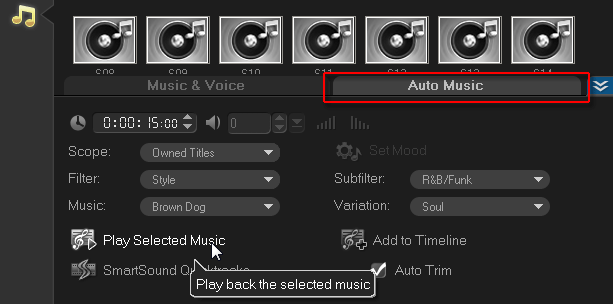 Что касается совместимости с ранее установленными наборами сторонних производителей — тут, кажется, тоже всё в порядке. По крайней мере, установленные ранее библиотеки SmartSound были вполне благополучно перехвачены Corel X3, и выбор музыкального сопровождения стал возможным непосредственно из VideoStudio.