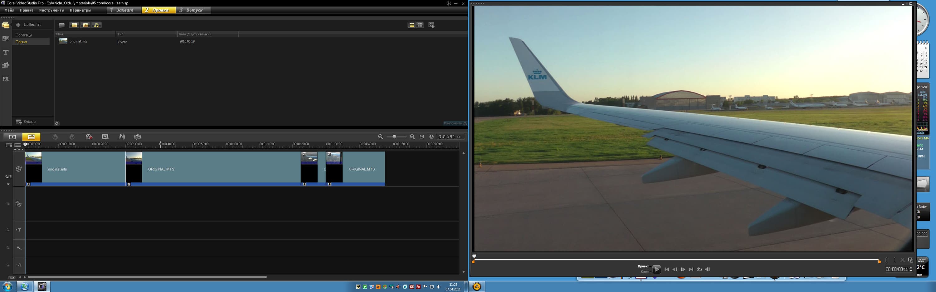 К чести программы, все до единого видеоролика успешно импортировались, отказов не последовало ни в одном случае. Хорошо, но как поведёт себя известный Оптимизатор MPEG — тот самый механизм, упоминавшийся выше? Какие файлы программа сумеет обработать без их полного пережатия? И какие из файлов Corel X4 считает «нестандартными»? Проверить нетрудно (хоть и долго) — будем помещать на таймлинию каждый имеющийся в копилке проекта файл, тут же вызывая Оптимизатор MPEG. В случае, когда экспорт файла без полного перекодирования невозможен, мы увидим серого цвета полосы.