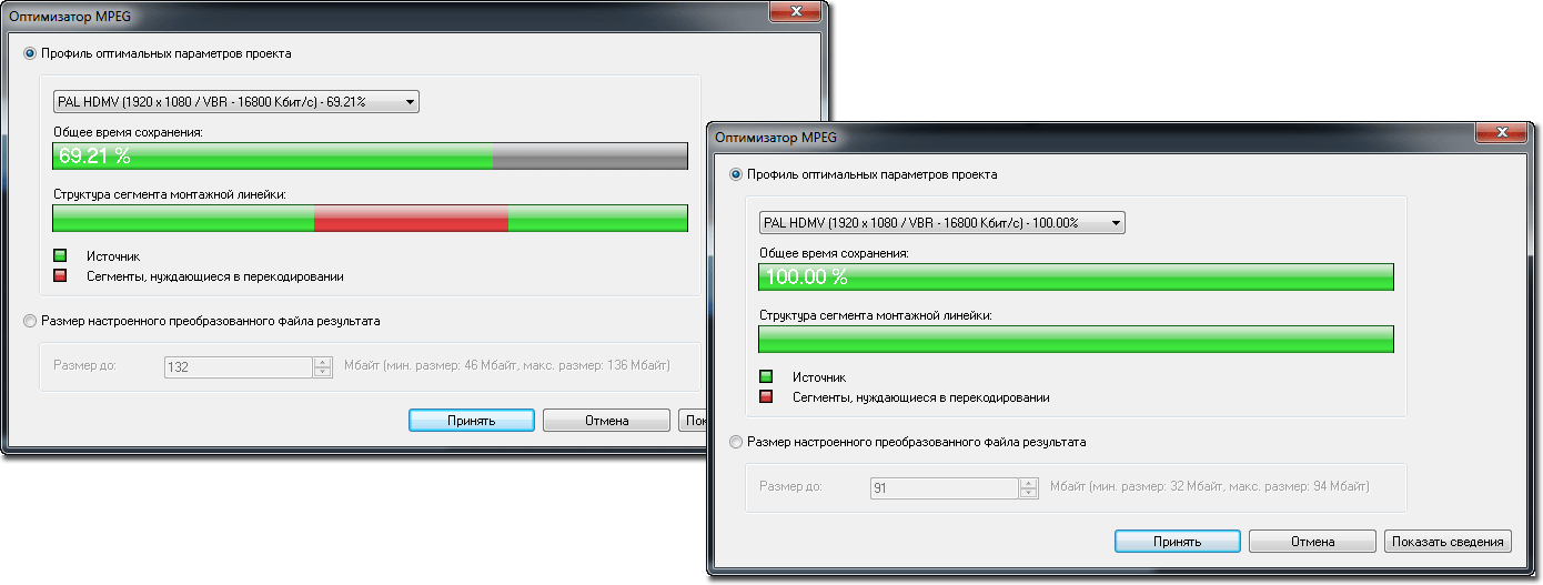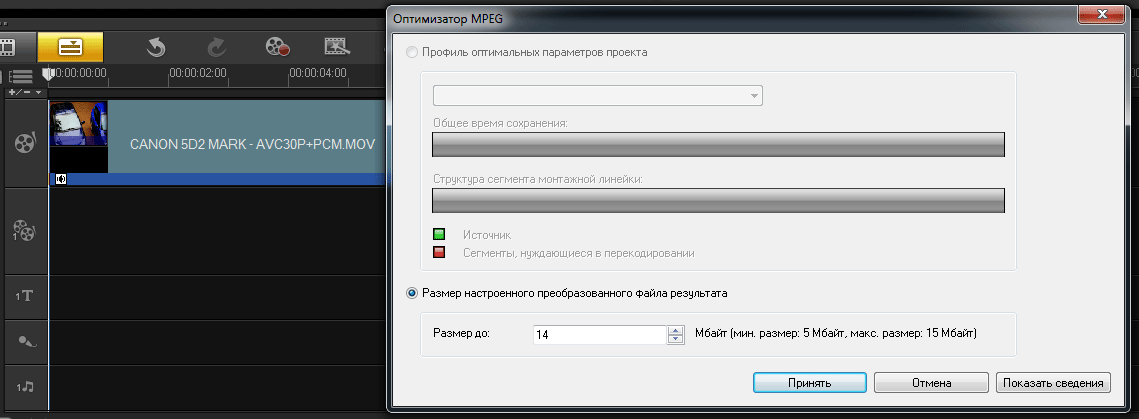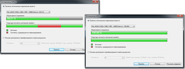 Однако во время долгой проверки мы неоднократно столкнулись со случаями, когда модуль Оптимизатор MPEG показывал серые полосы, но в то же время пункт «С параметрами первого видеоклипа» был почему-то активен! Что это может означать?