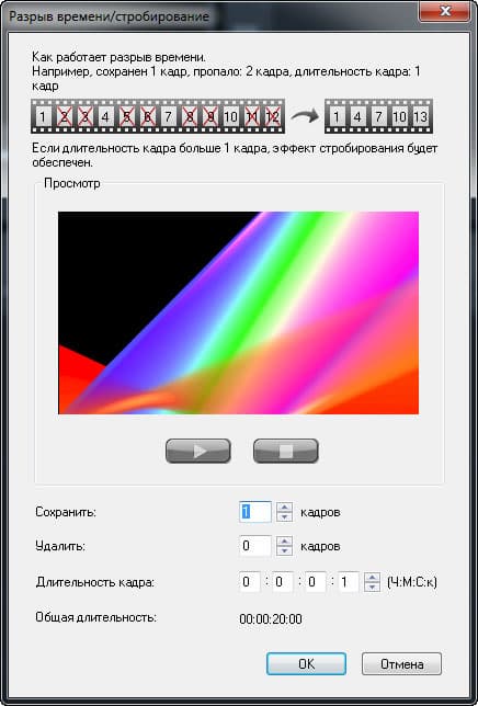 В общем-то, данная функция является совершенно обычной для любого профессионального видеоредактора, и уж тем более для программы композитинга (впрочем, даже известная всем утилита для обработки видео — VirtualDub — тоже умеет создавать из единичных кадров связанное видео). Однако появление подобной опции в любительском видеоредакторе — это хороший признак.
