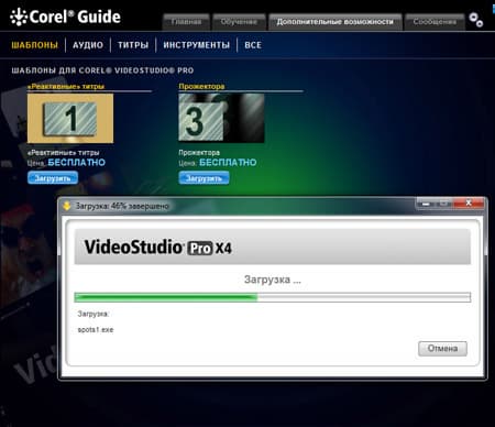 Вкратце следует сказать о присутствующем в программе модуле Corel Guide — это не только информационный центр, где можно получить справку по программе или просмотреть обучающее видео. Здесь имеется возможность загрузки дополнительных материалов: шаблонов оформления, аудиофрагментов, шрифтов и титров. А потому начать обустройство своего видеоредактора имеет смысл с ознакомления с содержимым Corel Guide.
