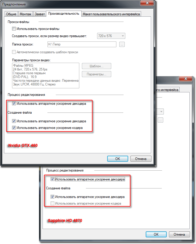 В заключение коснёмся не до конца выясненной ситуации с программной поддержкой графических процессоров (GPGPU). Что ж, эта технология и в самом деле работает, ускоряет не только процесс конечного рендеринга в AVC, но и помогает пользователю во время монтажа. Так, с мощной графической картой монтаж становится более комфортным, поскольку в деле декодирования видео участвует графический процессор. Однако остаётся невыясненным один вопрос: почему и в новой версии Corel видеокарта AMD (Sapphire HD 4870) ведёт себя точно так же, что и в предыдущих версиях программы? Имеется в виду отсутствие способности графического чипа AMD кодировать видео — видите, пункт, отвечающий за кодирование, в настройках программы недоступен?