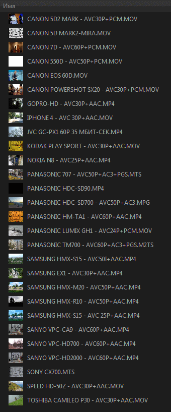 Кроме того, оценим всеядность программы, загрузив в неё разношёрстное видео из нашей мегакопилки. Это видеоролики, снятые самыми разными устройствами: фотоаппаратами, видеокамерами и даже «айфоном».