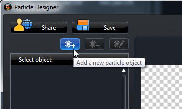 В открывшемся окне модуля Particle Designer, не мешкая, нажмём кнопку Add a new particle object.