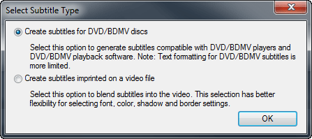 Теперь посмотрим, удобно ли в программе создавать субтитры. Делаются они в модуле, называющемся Subtitle Room, который вызывается кнопкой на панели инструментов либо клавишей F12. Здесь, во-первых, нужно определиться с типом титров, которые вам нужны: отключаемые или же впечатанные в видеокадр.