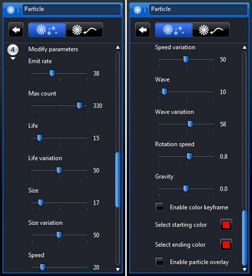 Следующее нововведение в программе: Particle Effects Designer. Ну просто мечта любителя поукрашать своё видео рамочками и летающими расфигулечками. Разберём этот модуль подробнее.