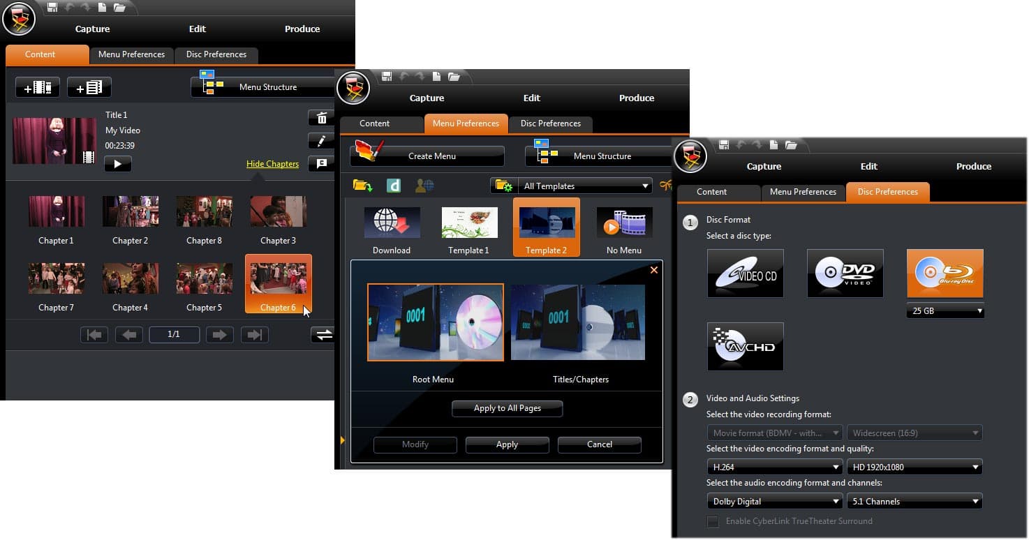Наконец, авторинг. Он вынесен в кнопку Create Disk, а инструменты, с которыми пользователю предстоит работать, размещены в трёх вкладках.
