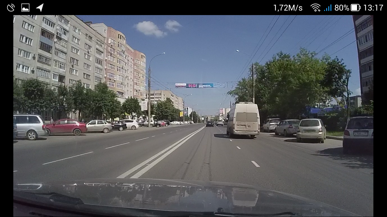 Характерная черта камеры: если во время просмотра живого видео трансляция потока с камеры на мобильное устройство осуществляется в ухудшенном качестве, то просмотр уже записанного видео производится в полном разрешении — в том, которое имеет оригинальный видеоролик. Это видно как по качеству следующего скриншота, так и по текущей скорости передачи данных, указанной в строке уведомлений смартфона.