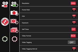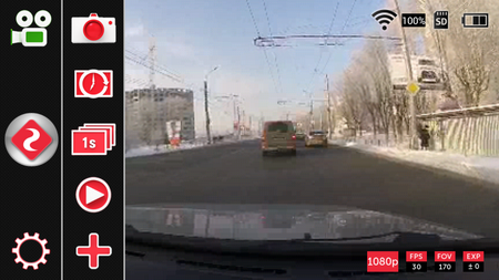Во время просмотра потокового видео на экране смартфона или планшета пользователь может вызвать панель настроек или режимов работы камеры. На экране отображается полная информация о текущем состоянии камеры — режиме работы, запасе батареи, уровне Wi-Fi и т.д. Потоковое видео при этом имеет невысокое разрешение, что снижает нагрузку на радиоканал.