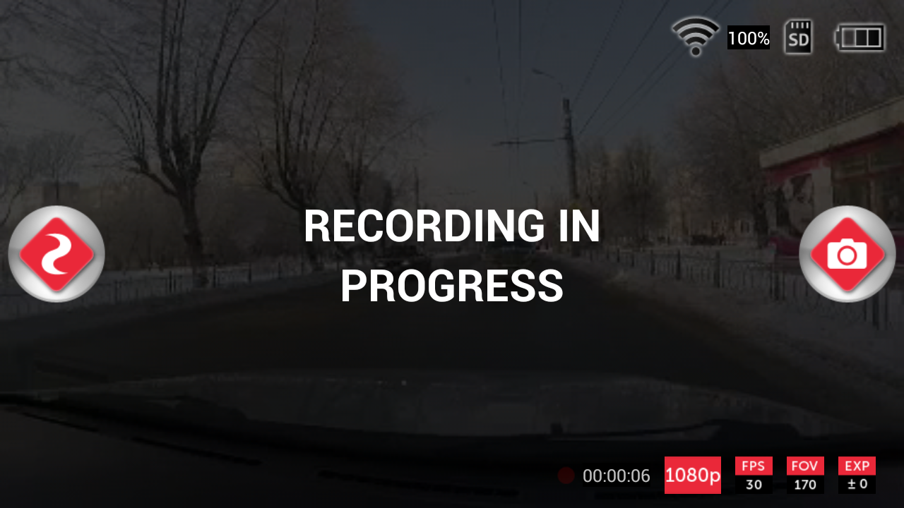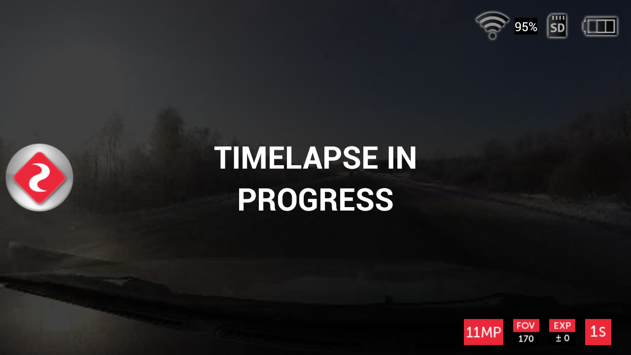 Если видеокамера чем-то занята — записывает видео или интервальное фото — окно видеопотока чуть затемняется, а поверх него отрисовывается сообщение, указывающее на текущий режим работы. При этом потоковое видео на заднем плане ничуть не замирает, не превращается в стопкадр — оно исправно отображается. Зачем это сделано — не совсем понятно, такое затемнение лишь мешает наблюдать за текущей сценой во время записи.
