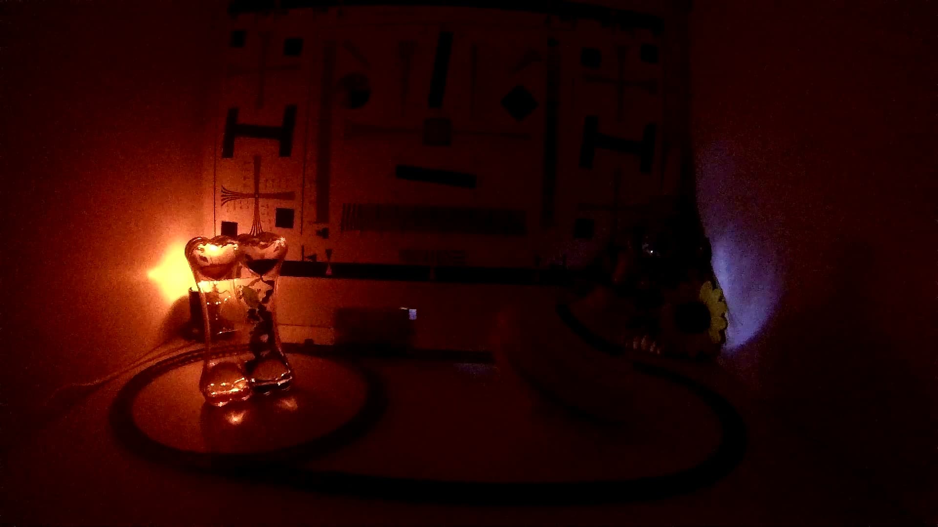 Да, с балансом белого просто беда. Но не стоит обижаться на автоматику камеры. Здесь для нее задача почти непосильная — источник света расположен слишком близко, а в кадре яркие источники света, на которые можно было бы опереться при вычислении температуры сцены, отсутствуют. Шумы при слабой освещенности также не доставляют удовольствия при просмотре такой картинки — но что можно требовать от миниатюрной камеры с миниатюрной же оптикой? Будь матрица в камере хоть сто раз волшебной чувствительности — это вряд ли исправит положение.