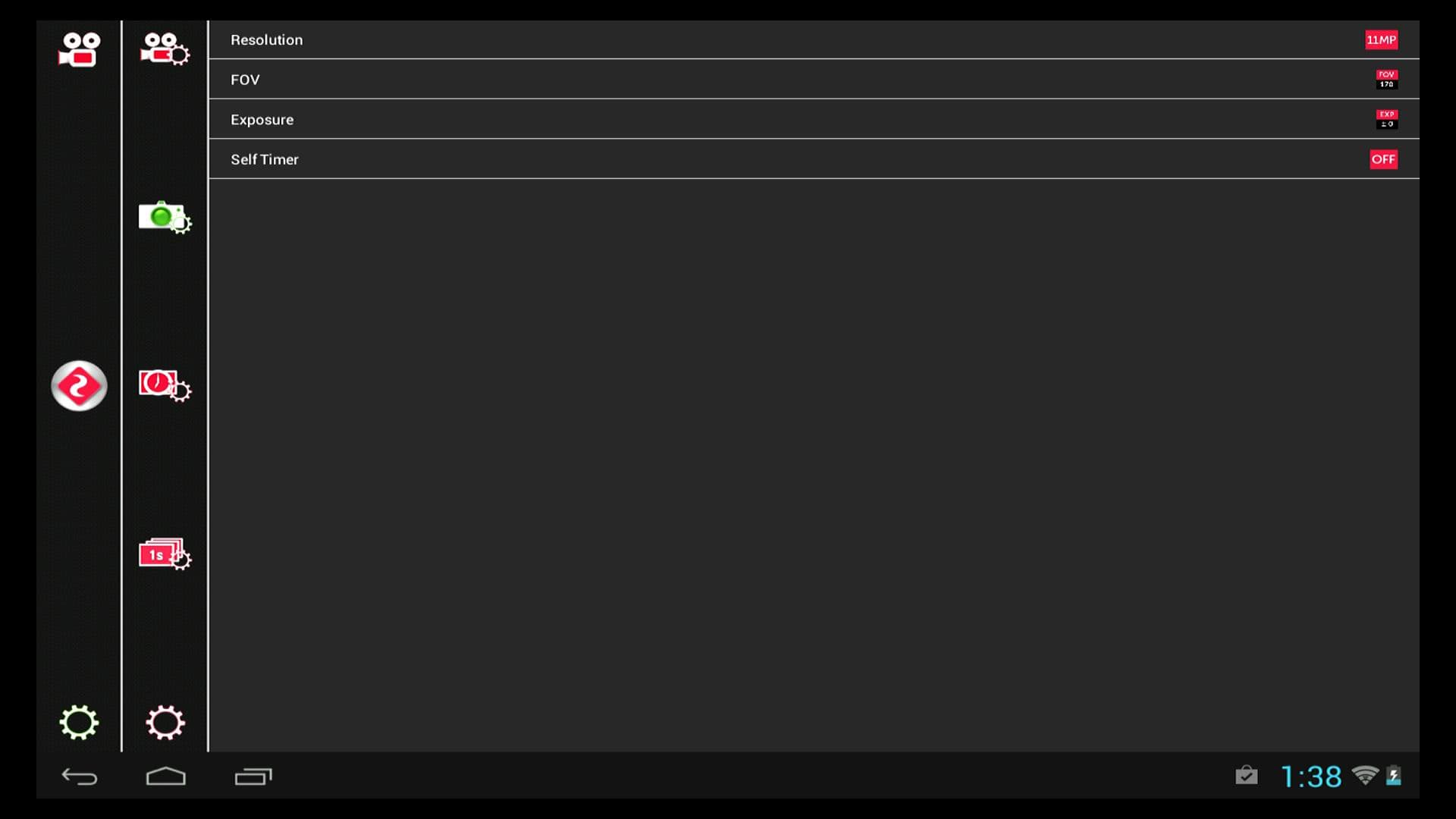 | Настройки режима фотокамеры | Настройки режима интервальной фотосъемки |