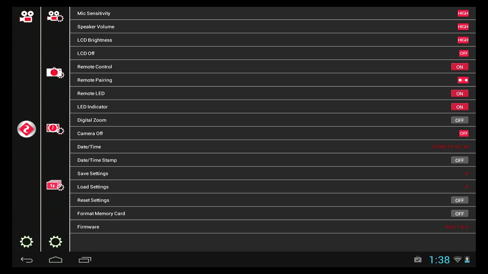 Помимо записи, просмотра и изменения настроек в приложении имеется и еще одна немаловажная функция — Галерея. Она позволяет просмотреть имеющийся на карте памяти материал, как видео, так и фото. При этом и фото, и видео передаются на мобильное устройство в своем истинном разрешении. Более того, любой материал позволяется также сохранить непосредственно на мобильное устройство (копирование производится в папку с именем программы).