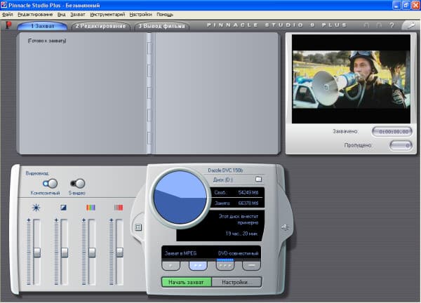 Отдельное удовольствие я получил при работе с программой Pinnacle Studio 9 QuickStart. Возможности самой полной версии подробно представлены в статье «Впечатления от комплекта Pinnacle Studio MovieBox Deluxe и Studio Plus 9», версия QuickStart отличается несколько ограниченными возможностями монтажа, но для захвата и небольшой корректировки материала ее возможности вполне достаточны. Для начинающих пользователей основное достоинство - интуитивно понятный интерфейс, в котором можно очень быстро разобраться и немедленно приступить к работе по захвату видео.