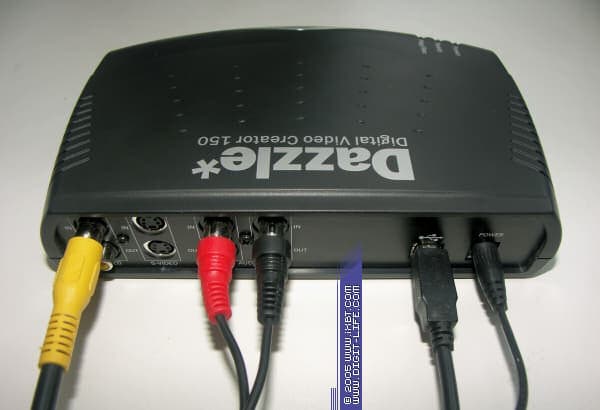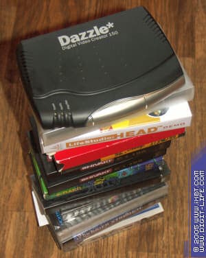 Итак, Dazzle* Digital Video Creator 150 – внешний аналогово-цифровой конвертер и аппаратный кодировщик MPEG-2. Это означает, что при оцифровке видеосигнала не потребуется дополнительного кодирования – уже на этапе захвата происходит сжатие, и материал фактически готов к записи на DVD. Прежде чем перейти к детальному описанию, сделаю маленькое уточнение: я не являюсь профессионалом в области цифрового видео. Мне, конечно, интересно знать, каким образом устройство работает, но это не главное. Основная задача - взглянуть на конвертер глазами человека, который только-только решил приобщиться к миру видео. Наверно, у каждого из нас накопилось много кассет с фильмами, которые хотелось бы перевести в цифровой вид, пока пленка не осыпалась или видеомагнитофон не приказал долго жить. Разумеется, к DVC 150 можно подключить и аналоговую видеокамеру, но монтаж любительских фильмов – вопрос отдельный и слишком глобальный. Мы ограничимся именно простой оцифровкой, это наиболее насущная и вполне посильная каждому задача. Будем переводить фильмотеку с уже архаичных VHS-кассет в практически бессмертную цифровую форму. Прежде, чем перейдем к самому процессу – техническая информация о конвертере Dazzle* DVC 150.