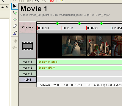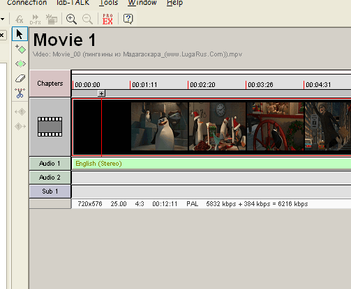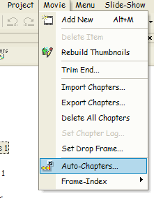 Для создания глав существует два способа. Первый - это автоматическое определение глав средствами DVD LAB Pro. Для чего нужно выбрать пункт меню Movie>AutoChapters…