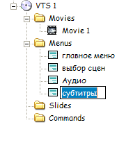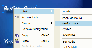 Продолжим работу. Создайте ссылки на остальные меню, так, как вы это сделали на сам фильм, но теперь обратите внимание на то, что вместо пунктов Menu1, Menu2 у вас отображаются их названия - правда, удобно?