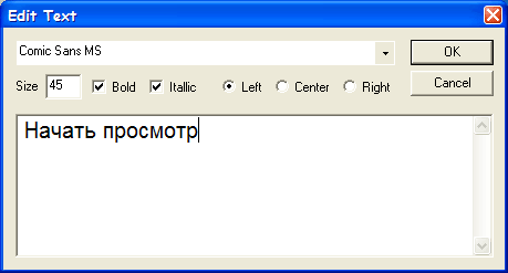 Текст можно двигать. Щелкните и удерживайте его мышкой, располагая как угодно, все зависит от фантазии. Или расположите строки одна под другой, выделите их и щелкните по выделенному левой кнопкой мыши. Появится меню, в котором находятся дополнительные инструменты для расположения вашего текста в окне. В данном случае выровняйте строки по левому краю, применив команду Align Left.