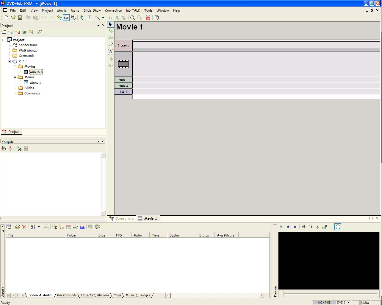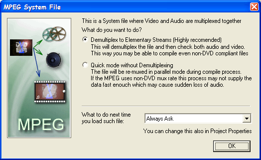 Скажем кратко о демультиплексировании. Говоря проще - это обыкновенное разбиение .mpg файла на составляющие его части, видео и звук. Процесс демультиплексирования из одного .mpg файла делает два файлика, видео файл и звуковой файл, которые потом и импортируются в проект. Рекомендуется выбрать демультиплексирование (иначе программа это сделает за вас при компиляции проекта), после чего в окне Window Assets вы также получите 2 файла, видео и аудио.
