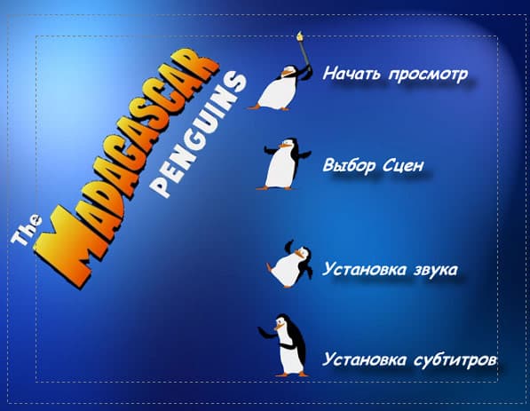 Итак, созданное вами меню содержит кадры со ссылками на сцены из фильма. При желании каждый кадр можно снабдить кратким текстовым комментарием. Но, так как данный пример содержит 12 глав, то все они вряд ли поместятся в одно меню, поэтому понадобится создать второе меню глав, не забыв при этом снабдить все меню кнопками Далее и Вернуться, на ваше усмотрение. К сожалению, просмотреть ваше меню в движении путем его тестирования не получится: пока вы не создадите готовый DVD, вы ничего не увидите.