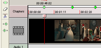 Как же быть, если вы установили главу не в том месте и хотите ее удалить или сдвинуть? Для этого следует выделить главу, щелкнув по зеленому ромбику или красной стрелке (стрелка или ромбик означают, соответственно, проиндексированы ли кадры клипа или нет. Индексация используется для более точного распределения глав).