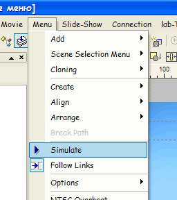 Протестируйте ваше меню, чтобы посмотреть, как же вся эта красота будет работать и смотреться. Для этого выберите команду Menu>Simulate.