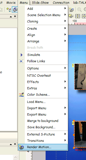 Далее каждому фрейму необходимо присвоить ссылку согласно кадрам, а в окне свойств выбрать для каждого фрейма параметр Invisible Normal, как в главном меню. Протестируйте меню, если все сделано правильно, то при выборе нужного пункта он должен выделяться рамкой того цвета, который указан во вкладке Map окна свойств меню. Нужно помнить, что в этой же вкладке значение цвета для кнопки в режиме Normal должно быть на нуле, иначе все фреймы будут подсвечиваться в обычном режиме. Теперь перейдите к созданию не статичных картинок, а двигающегося меню, для чего выберите пункт Menu>Render Motion.