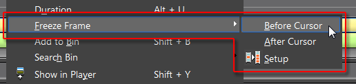 Новая команда Freeze Frame, вызываемая через выпадающее меню, позволяет "заморозить" клип на таймлинии, вревратив его в стоп-кадр. Таким образом, теперь отпадает необходимость создавать Still Image и помещать получившийся bmp-рисунок на таймлинию в то место, где этот стоп-кадр необходимо отобразить.