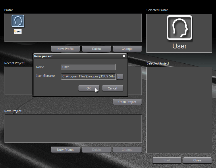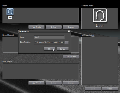 Впечатление о театре создается, как известно, еще в гардеробе. Ну а какая же современная программа может обойтись без функциональной приветственной заставки? Разработчик исправил оплошность, добавив непривычную для стародавних приверженцев Edius опцию: стартовое окно, да непростое, а с возможностью хранения пользовательских профилей, как в самой настоящей операционной системе.