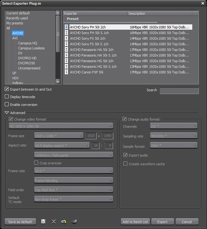 В пятой версии Edius отсутствует ProCoder Express, его заменил встроенный модуль экспорта, открывающийся нажатием клавиши F11. Здесь уже присутствует большинство востребованных форматов с различными настройками. Разумеется, предусмотрена возможность создания собственных пресетов для их дальнейшего постоянного использования.