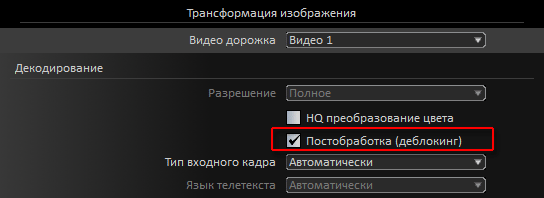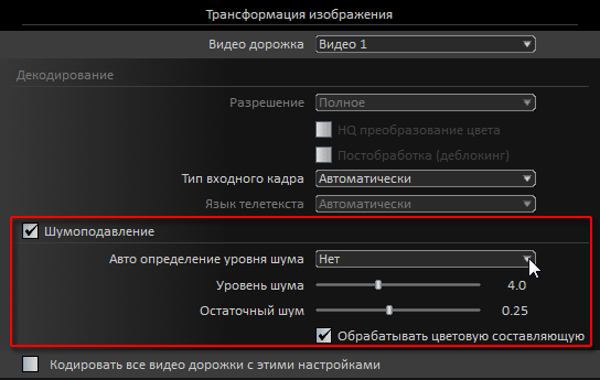 Настройки, отвечающие за шумоподавление, представлены в Elecard Converter Studio отдельным блоком, на вкладке "Трансформация изображения".
