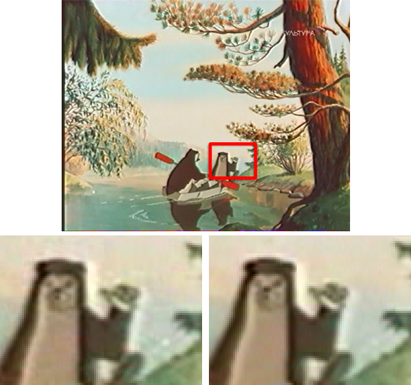 В заключение рассмотрим, как быстро и легко можно отреставрировать старые записи. Ниже - стоп-кадр из когда-то захваченного с телевизора мультфильма.