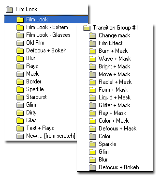 Каждый эффект снабжен анимированной миниатюрой, с высокой степенью достоверности демонстрирующей работу фильтра. Для применения того или иного эффекта к видео сделайте двойной клик мышью по выбранной миниатюре.