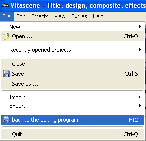 Для сохранения настроек перехода выполняется команда File>Save (Ctrl+S), а для возврата обратно в видеоредактор команда File > back to the editing program (F12).