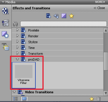 Обещана поддержка предварительного просмотра эффекта близко к реальному времени для видеокарт ATI Radeon X700Pro/X800Pro и всей серии X1000, и карт на чипах Nvidia серий GeForce 7000/8000. После установки плагин займет место в списке эффектов программы Premiere Elements: Video Effects > proDAD > Vitascene Filter.