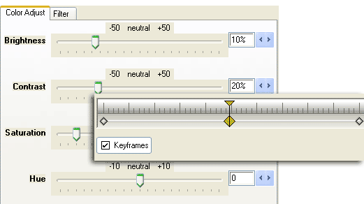 Если индикатор текущего времени переместить вдоль таймлинии, и после этого изменить настройки эффекта, то автоматически появится новый ключевой кадр.