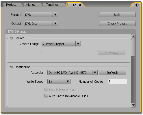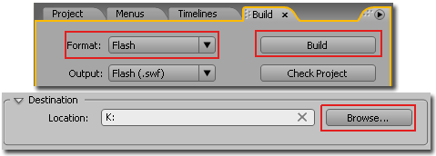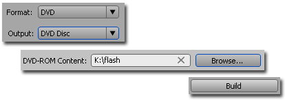 Еще один вариант использования Flash проекта это добавление его к DVD проекту. В пункте DVD-ROM Content с помощью кнопки Browse укажите, какие файлы вы хотите записать вместе с DVD проектом, и нажмите кнопку Build.
