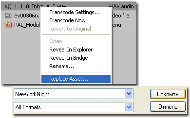 Пора выйти из программы Adobe Soundbooth CS3, (Ctrl+Q), и замените старый аудиофайл на новый, выбрав пункт Replace Asset.