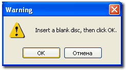 По окончании процесса транскодирования и инициализации, если вы не вставили в привод чистый диск, то появится окно с предупреждением,
