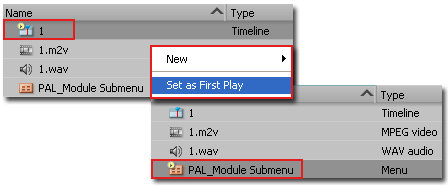 Чтобы при запуске на DVD-проигрывателе диска первым начиналось проигрываться именно меню, а не видео, нажмите на нем правой кнопкой мыши и выберите пункт Set as First Play.